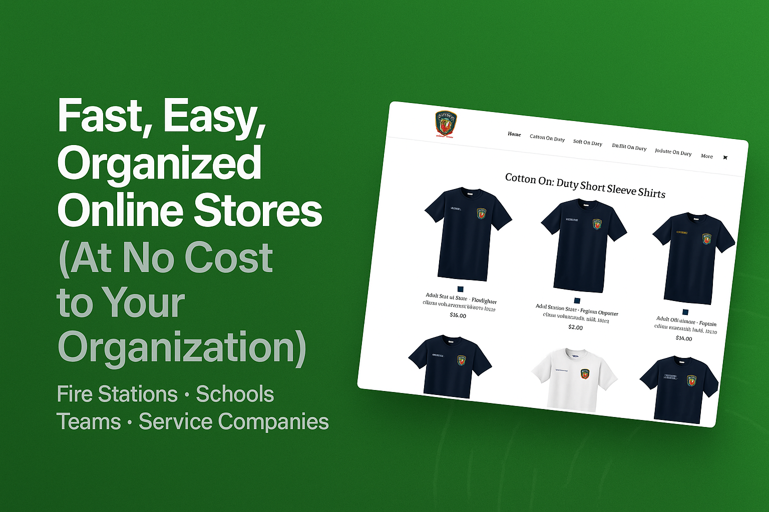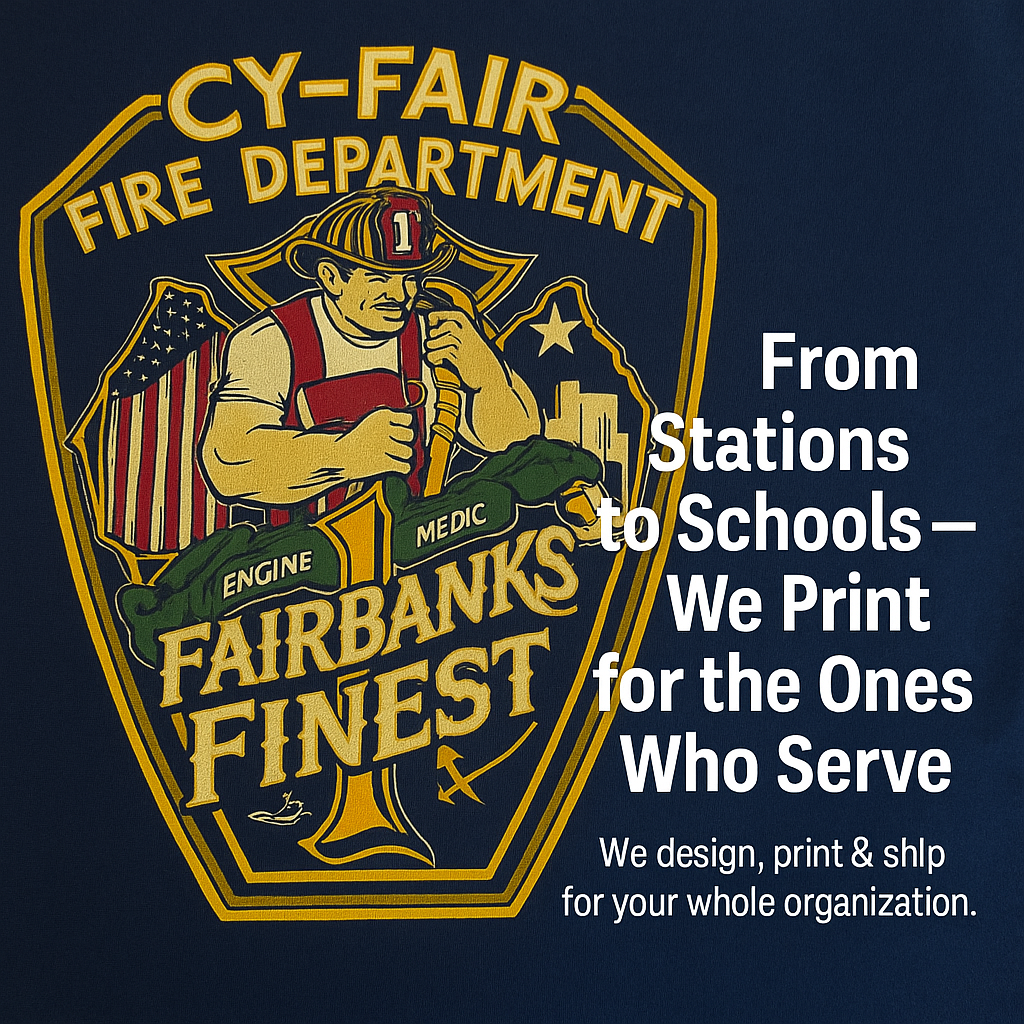The custom apparel options available include screen printing, embroidery, and a variety of garments tailored for different needs, such as uniforms for fire departments and apparel for schools, ensuring quality and fast turnaround.